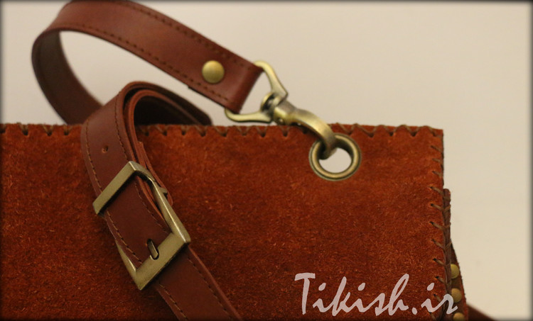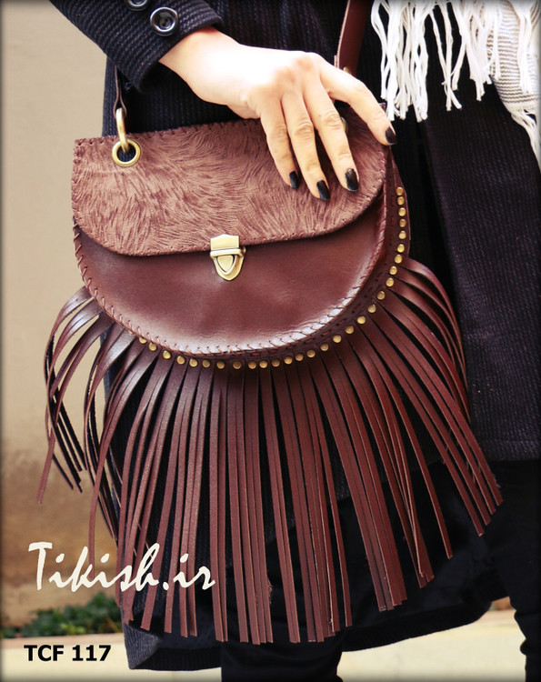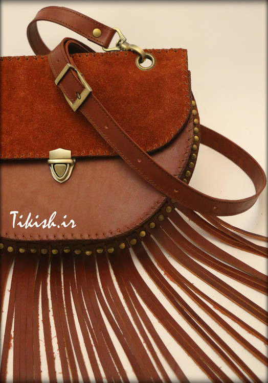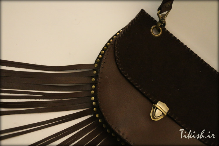 کیف ریشدار چرم تیکیش تهیه شده از چرم طبیعی درجه یک گاوی به رنگ قهوه ای تیره و عسلی تیره میباشد.جنس در کیف از اشبالت طبیعی گاوی است. در دوخت این کیف از نخ موم زده مقاوم استفاده شده ، جهت امنیت بیشتر جهت باز و بسته شدن در کیف از قف استفاده شده است. این کیف سبک ، راحت و قابل حمل در کلیه ی مکان ها.