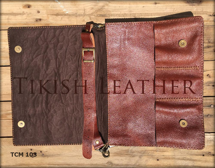 کیف رو دوشی تیکیش کد TCM-103 از چرم طبیعی گاوی درجه یک مقاوم ساخته شده است و با طراحی و ساخت منحصر به فرد آن مناسب برای استفاده در جلسات و ادارات رسمی و استفاده روزمره است. تمامی قسمت ها ی کیف کاملا دست دوز و برای مقاومت بیشتر جهت دوخت از نخ موم زده که از استحکام بالایی برخوردار است استفاده شده. جهت سهولت در استفاده دو عدد جیب در جلوی کیف و و یک عدد جیب زیپدار در پشت کیف قرار داده شده است.