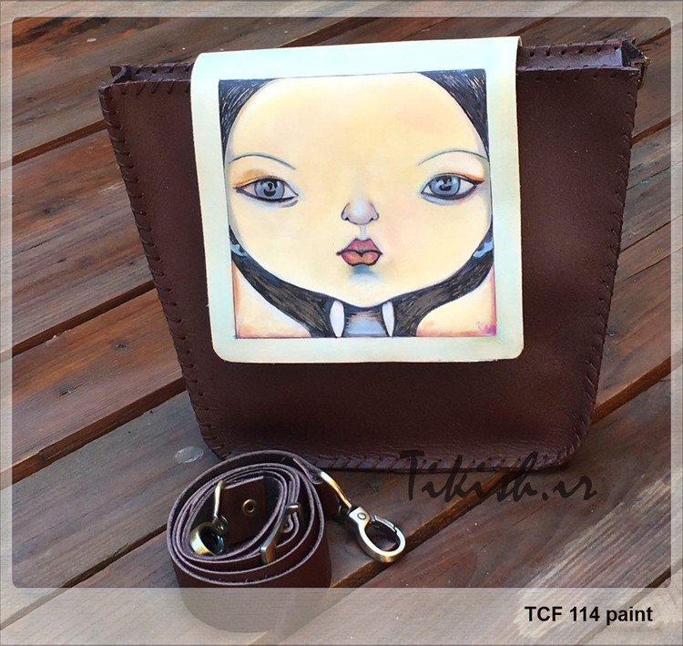 کیف نقاشی شده تیکیش کد TCF-114 تهیه شده از چرم طبیعی درجه یک گاوی به رنگ قهوه ای تیره. روی در کیف توسط یکی از هنرمندان خوبمان نقاشی شده است و جنس در کیف از چرم طبیعی گاوی میباشد. برای لکه های غیر چربی کاملا قابل شستشو می باشد . در صورت بروز لکه غیر چربی میتوانید دستمال مربوط همراه با کمی کف صابون را روی محل بکشید . در دوخت این کیف از نخ موم زده مقاوم استفاده شده ، جهت امنیت بیشتر علاوه بر قرار دادن آهن ربا داخل کیف زیپ قرارداده شده است. کیف سبک ، راحت و قابل حمل در کلیه ی مکان ها.