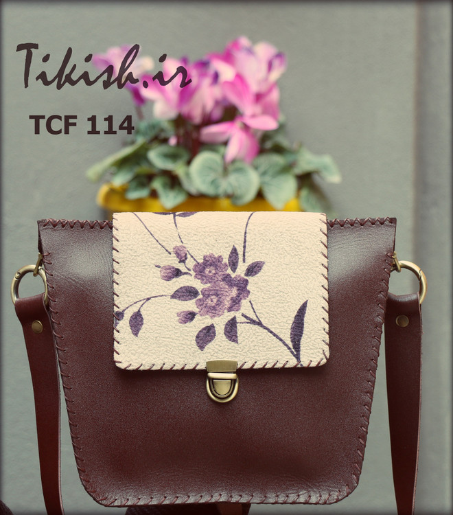 کیف رو دوشی چرم و پارچه تیکیش کد TCF-114